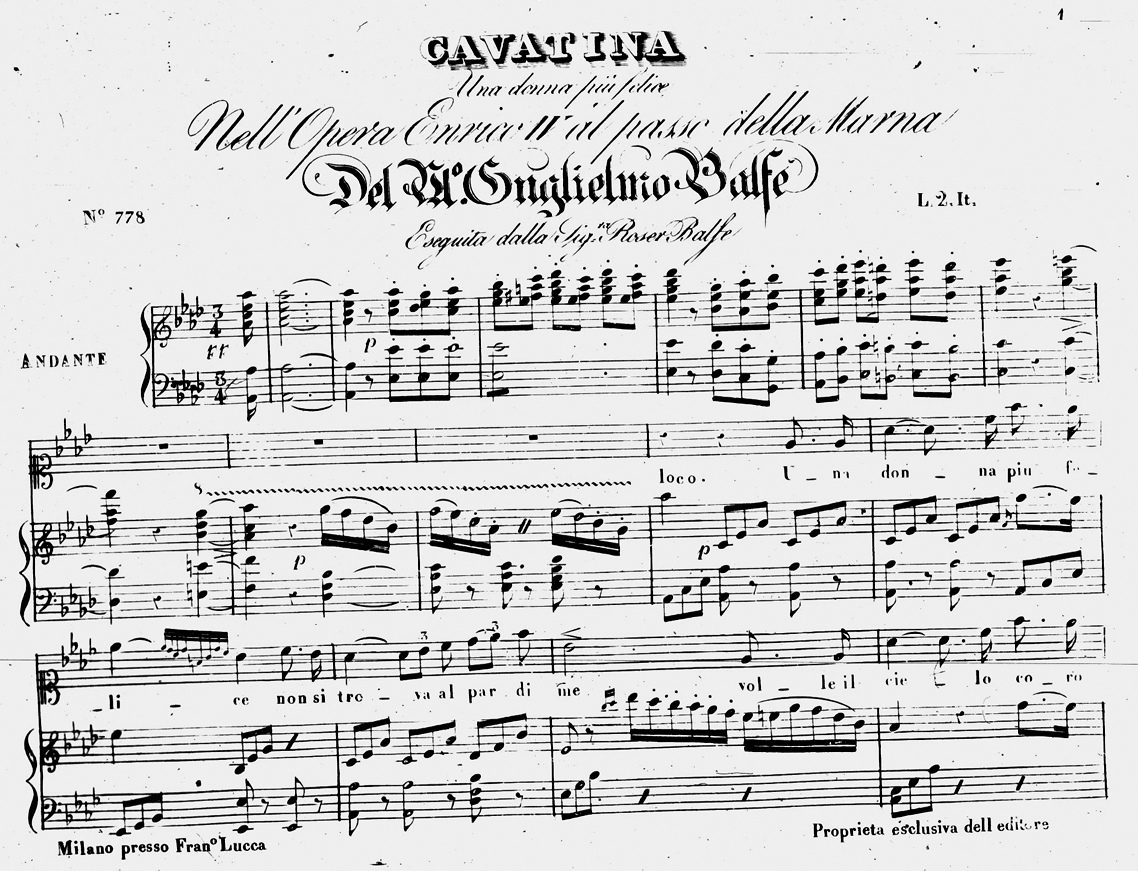 A soprano aria from Balfe's opera Enrico IV al passo della Marna (Teatro Carcano, Milan 1833) ©Basil Walsh