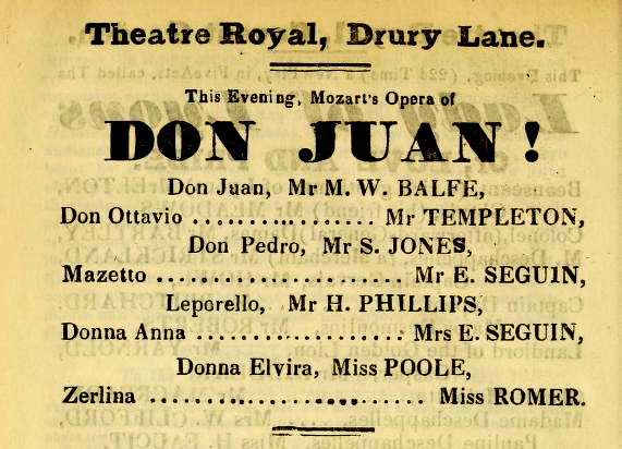 Shortly thereafter,  Balfe, joined the orchestra at the Drury Lane Theatre, which was then under the direction of fellow Irishman Tom Cooke (1782- 1848).