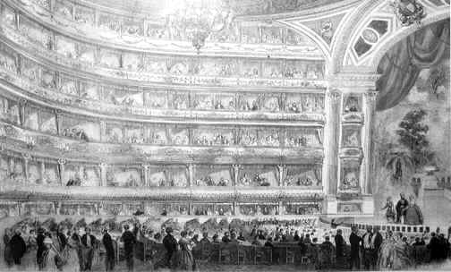 La Scala, Milan around the time Balfe and Malibran sang there together in 1834. ©Basil Walsh